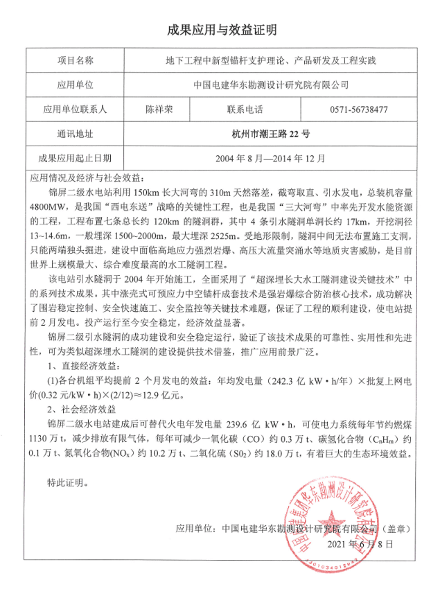 四川錦屏一級(jí)電站、錦屏二級(jí)電站、云南小灣電站、廣西百色水利樞紐、重慶彭水電站、河南抽水蓄能電站、官地電站、宜興抽水蓄能電站、四川白鶴灘電站、烏龍弄電站、安徽響水澗電站、滇中引水項(xiàng)目等工程。